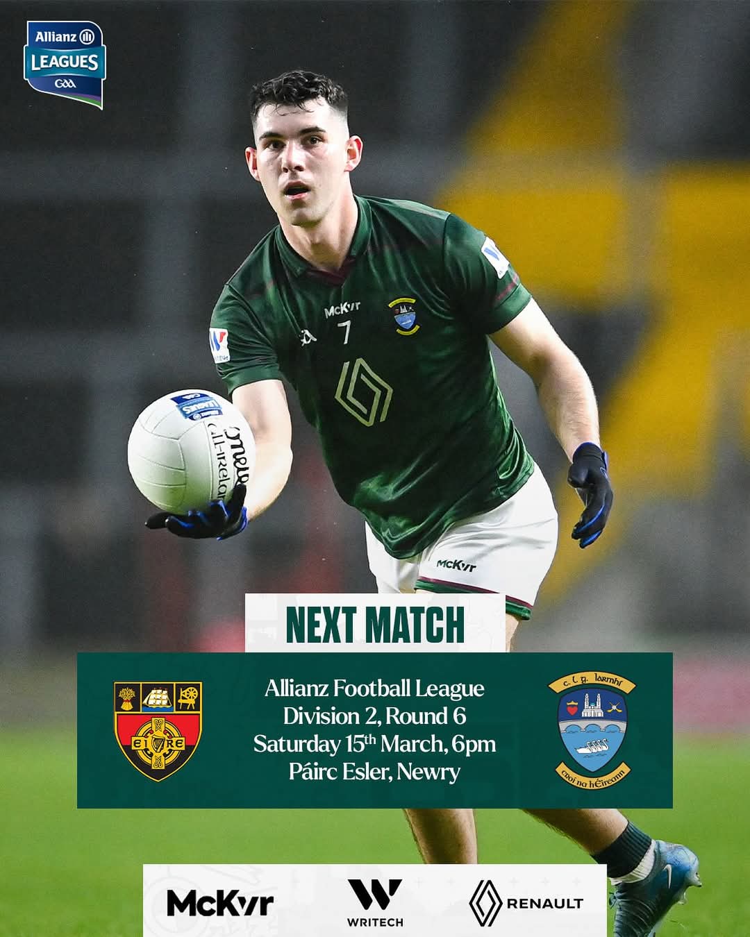Our Senior Footballers travel up north to Newry to face Down in round 6 of the Allianz Football League on Saturday