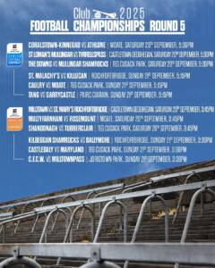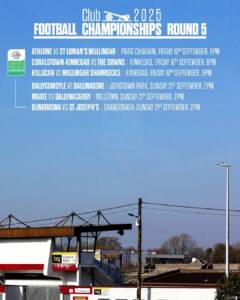 This weekend we have Round 5 of our 2025 Shay Murtagh and Clarke’s Bar Football Club Championships.